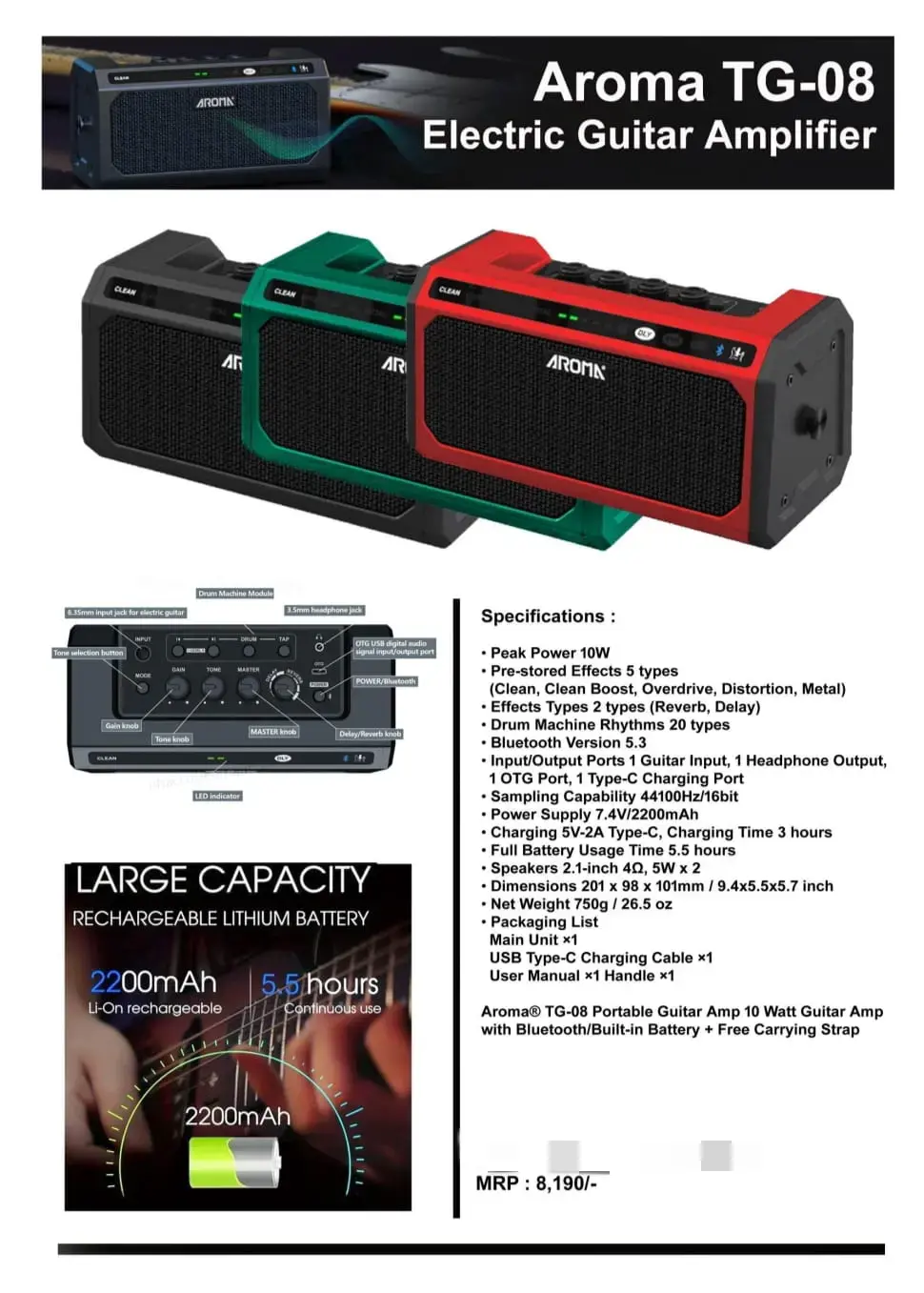 Input/Output Ports:1 Guitar Input, 1 Headphone Output, 1 OTG Port, 1 Type-C Charging Port