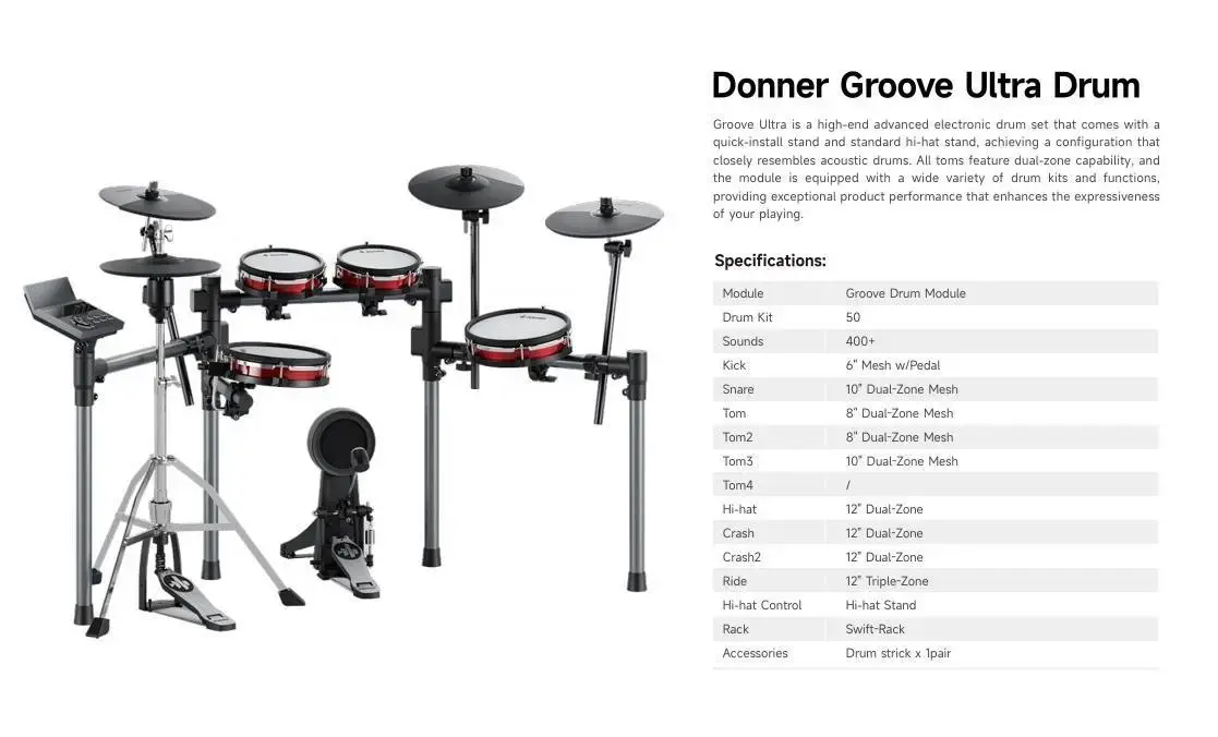 Specifications of Groove Ultra Drum Kit
